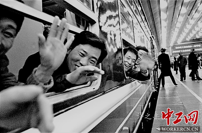 图五 2007年2月6日晚23点24分,农民工专列L219次列车缓缓地从北京西站驶出。