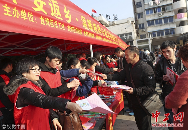 浙江温州:志愿者为务工人员分发“爱心包” 温暖返乡路