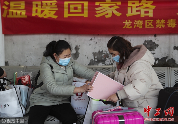 浙江温州:志愿者为务工人员分发“爱心包” 温暖返乡路