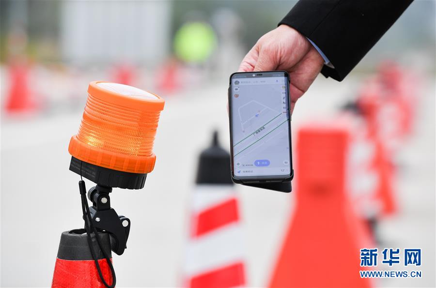 1月25日,一个设置在广佛肇高速公路鼎湖休息区的“智慧锥桶”发布的道路施工信息已经被上载到地图APP。 新华社记者刘大伟摄
