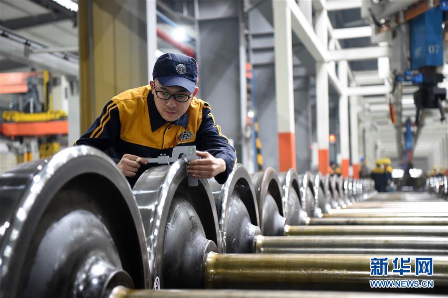 1月25日,重庆西车辆段职工在对货运列车的车轮对进行检测作业。 春运期间,中国铁路成都局集团有限公司重庆西车辆段针对全段车辆以及“中欧班列”等重点列车加大检查、检修、安全巡查力度,确保列车运输安全。 新华社记者 唐奕 摄