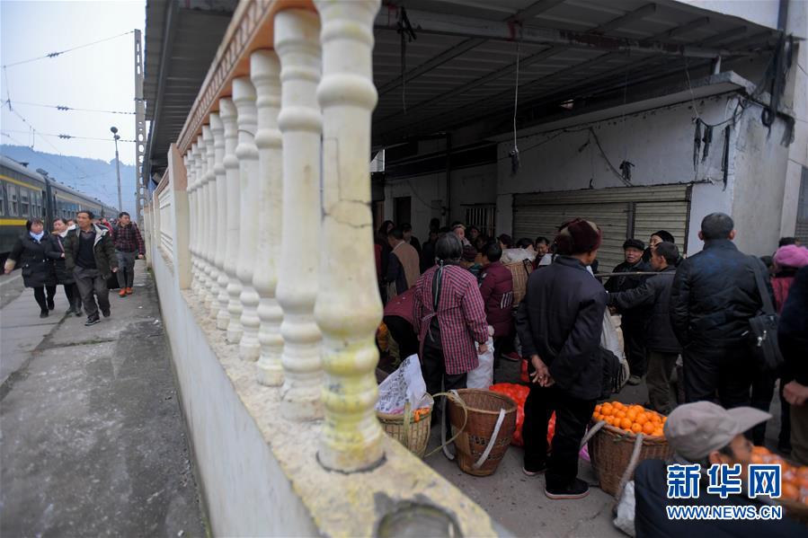在大龙村站旁的集市上,人们在买卖商品(1月25日摄)。新华社发(陈泽国 摄)
