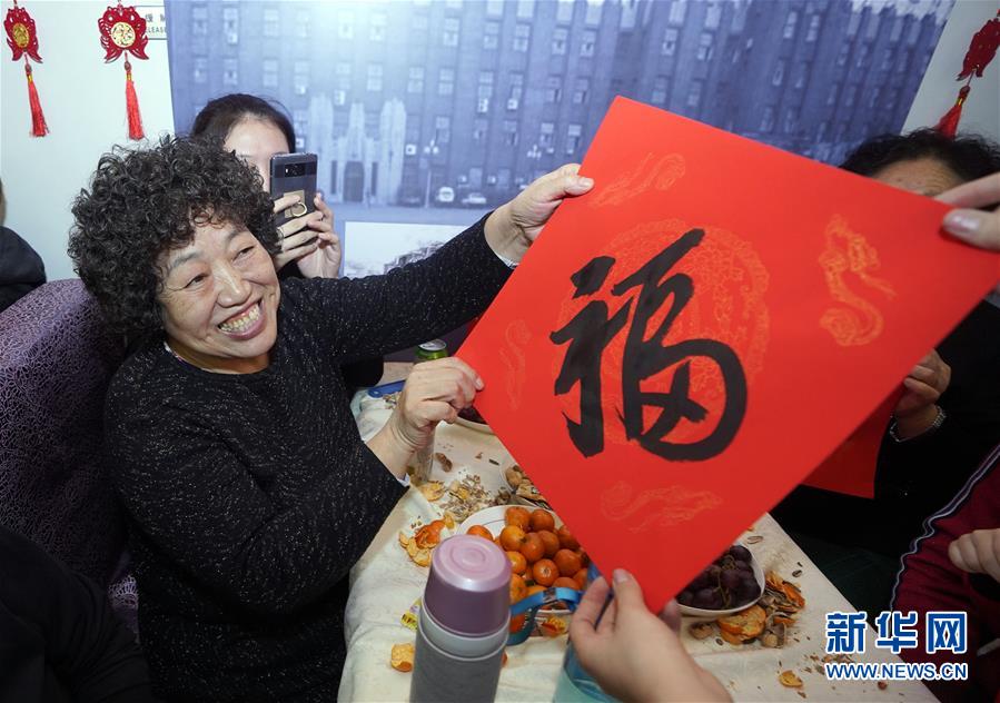 1月26日,在T48次列车上举行的“回家过年”春晚上,一名旅客接过乘务人员送的福字。 当日,一场主题为“回家过年”的列车春晚在由齐齐哈尔开往北京的T48次列车上举行,中国铁路哈尔滨局集团公司齐齐哈尔客运段乘务人员自编自演节目,为春运期间返乡的旅客带来欢乐与温暖。 新华社记者 才扬 摄