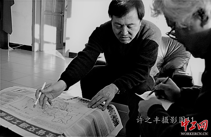 2007年1月23日下午,吉林市交通局局长张玉奇(左)指着地区交通规划图感慨颇多地说:“由于公路去年刚开工,资金到位率不理想,造成拖欠,这只是暂时的,也是过去没有遇到的困难。”“要致富先修路,这也是加快吉林经济发展所需要的。”“如果农民工工资3-5天之内还不到位,你们再来找我!”。