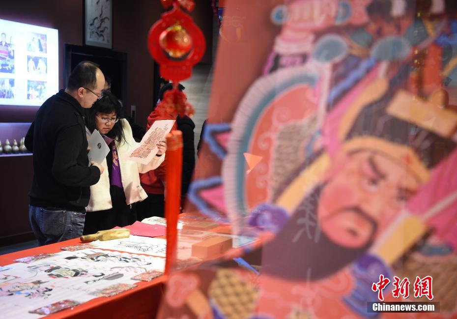 图为参加活动的市民在现场欣赏、选购年画。中新社记者 侯宇 摄