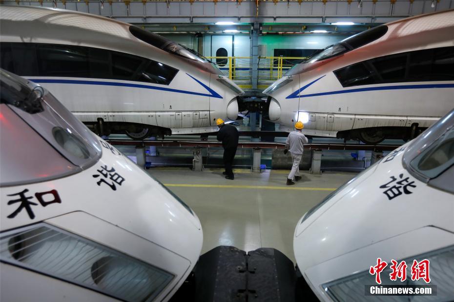 春节临近,中国铁路西安集团有限公司西安动车段的1900余名“动车医生”进入一年中最忙的时刻,他们对配属的132组动车组进行全面“体检”,为旅客平安回家提供安全保障。作为西北地区最大的动车检修基地,西安动车段承担着郑西高铁、大西高铁、西成高铁、宝兰高铁以及西安至北京、上海、广州、深圳、温州等城市的高铁和西宝、西延段多个型号动车组的检修任务。吴瑞西 摄