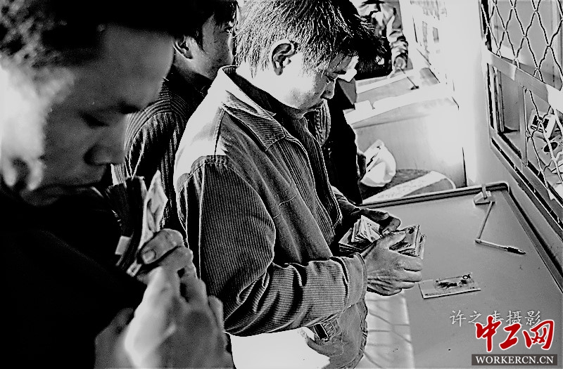 10多年前的2007年2月1日上午,北京西单路口的施工工地,农民工正在排起长队,等待着现场发放工资。农民工周文惠、王新春、李汉波、刘先明等收入都在万元以上,第一年来北京打工的夏世元说“12700元要全部交给妈妈”。工地负责人介绍“工地农民工8000人全部拿到了工资。”工人日报-中工网 许之丰摄影报道
