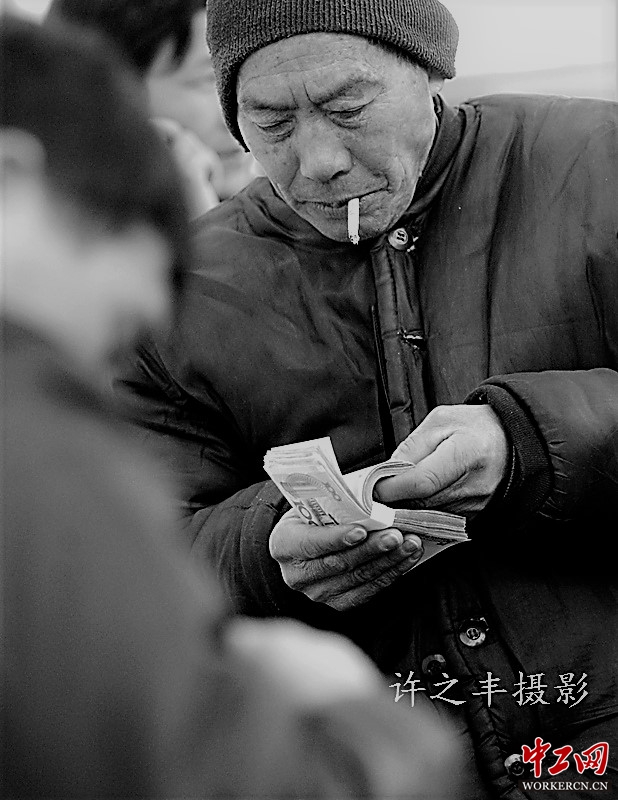 10多年前的2007年2月1日上午,北京西单路口的施工工地,农民工正在排起长队,等待着现场发放工资。农民工周文惠、王新春、李汉波、刘先明等收入都在万元以上,第一年来北京打工的夏世元说“12700元要全部交给妈妈”。工地负责人介绍“工地农民工8000人全部拿到了工资。”工人日报-中工网 许之丰摄影报道
