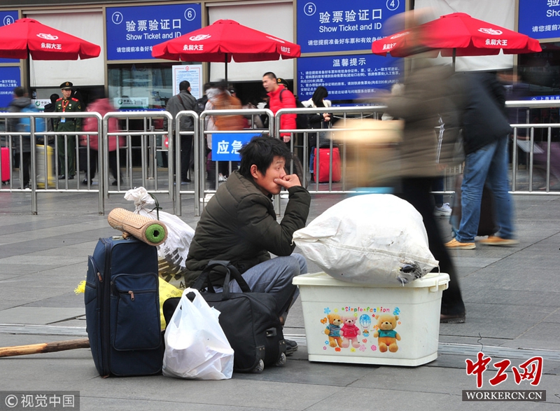 2019年1月30日,上海,随着除夕的临近,铁路春运也进入了高峰期。当日,在铁路上海火车站南广场,返乡客流、寒假学生客流、旅游过年客流叠加,呈现出每年铁路春运中繁忙的景象。 (图片来源:视觉中国)