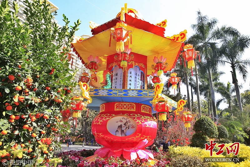 2019广州越秀迎春花灯会璀璨迷人 市民可白天赏花晚上观灯