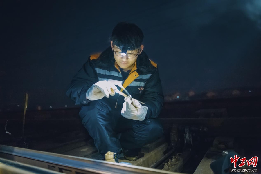 调整完后,何雄亮开始测试轨缝标准。