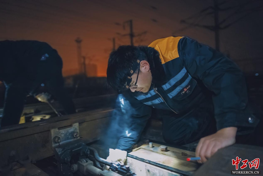 何雄亮工作很细心,他总是会对道岔的各部位螺丝防松脱检查好几次才放心。