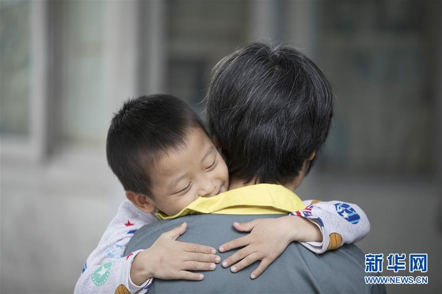 陈俊宁依偎在周祝肩膀上(1月30日摄)。 新华社记者田建川摄