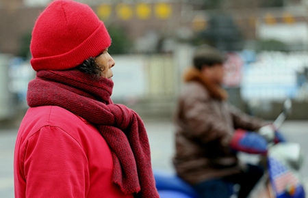 雨夹雪后 南京街头寒意逼人