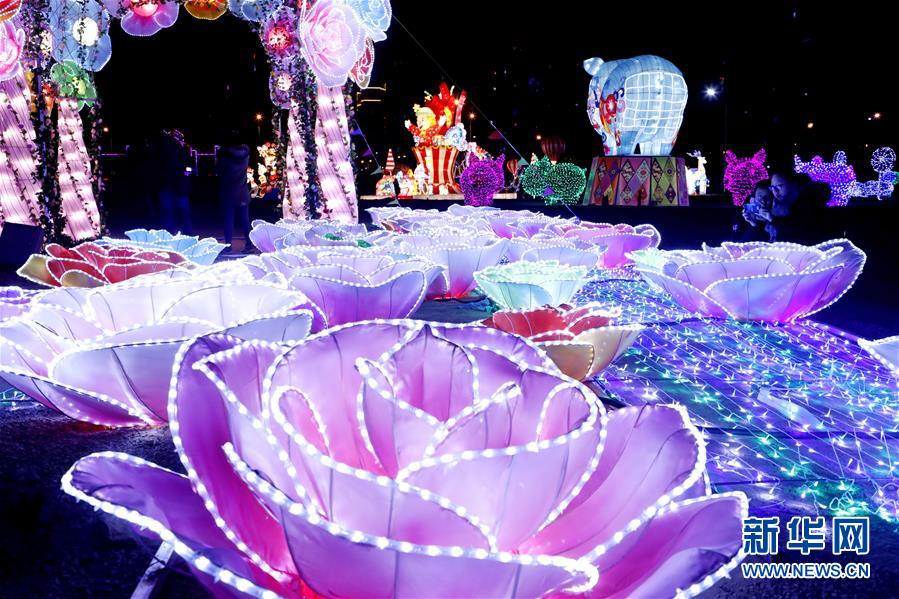 这是2月2日在张家口新春灯会上拍摄的灯组。 当日,2019张家口新春灯会在河北张家口市经济开发区老鸦庄镇亮灯,百余个大型灯组璀璨夺目。 新华社发(武殿森 摄)