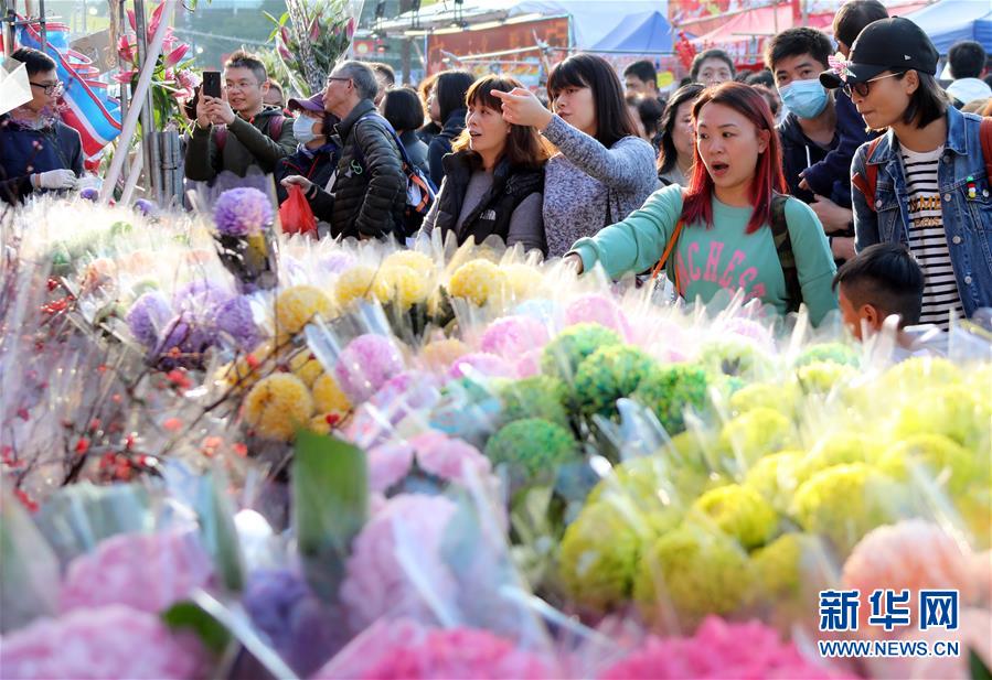 2月2日,人们在香港维多利亚公园年宵花市选购花卉。临近春节,香港各大年宵花市一日比一日红火,人们纷至沓来,赏花购物。 新华社记者 吴晓初 摄