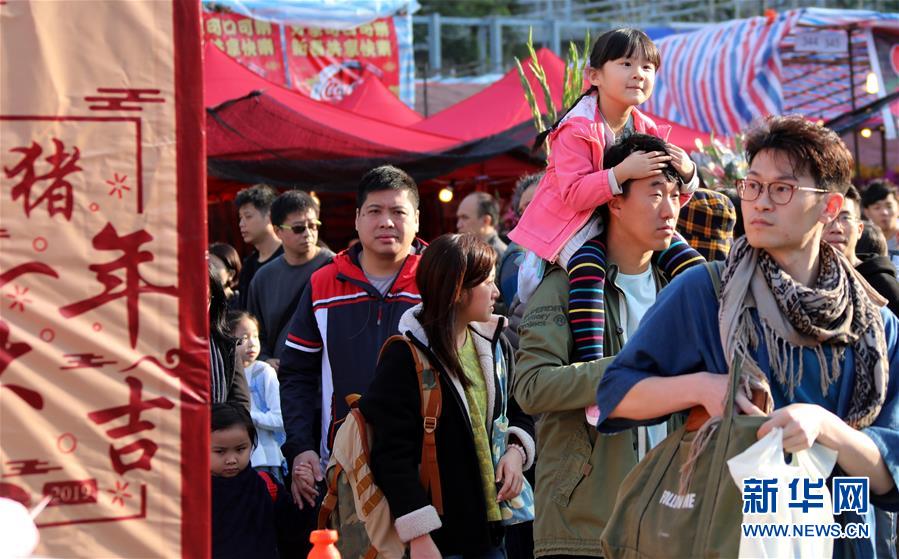 2月2日,人们在香港维多利亚公园年宵花市参观选购。 临近春节,香港各大年宵花市一日比一日红火,人们纷至沓来,赏花购物。 新华社记者 吴晓初 摄