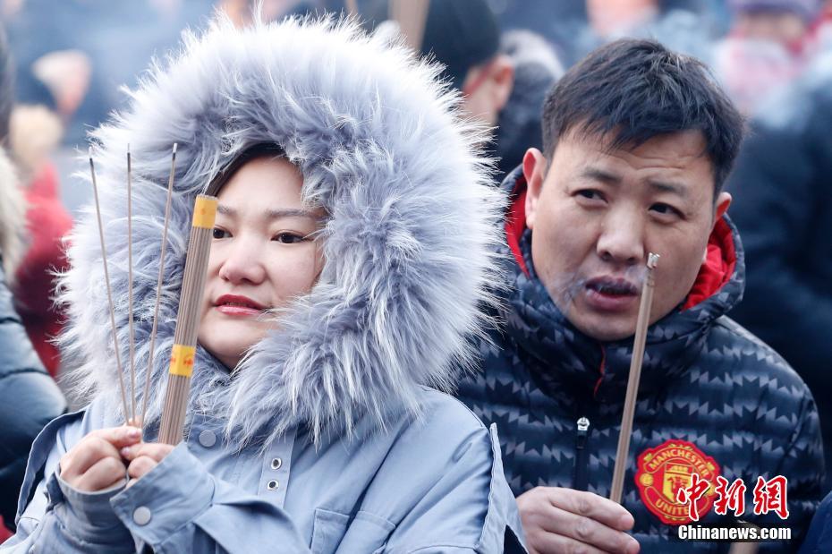 2月5日农历正月初一,北京雍和宫,大批市民赶在新年烧头柱香祈福。中新社记者 韩海丹 摄