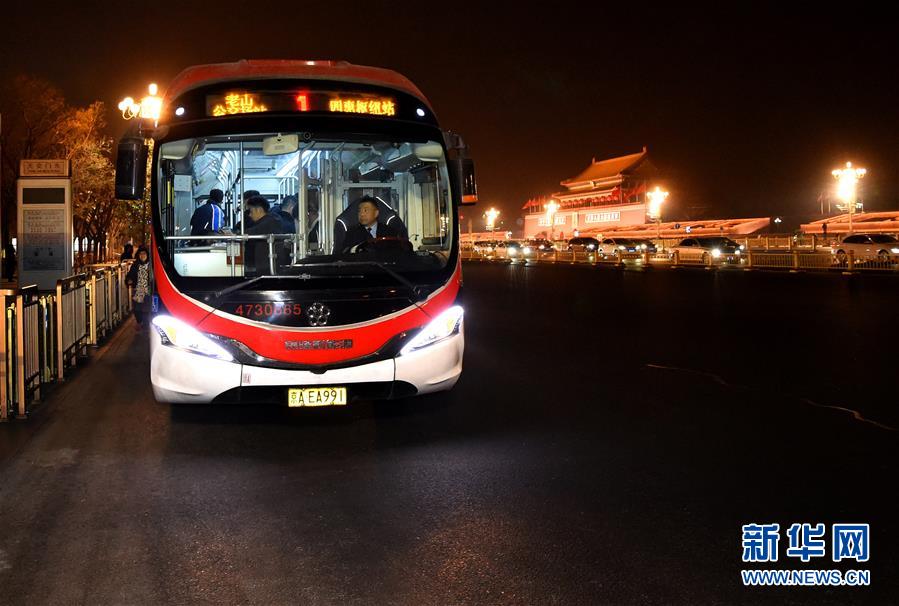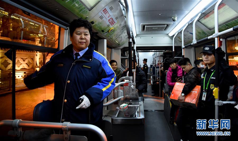 2月4日晚,1路公交车到达天安门东站。 除夕之夜,北京市公交集团第四客运分公司1路公交车员工坚守岗位,为广大乘客服务。 新华社发(任超 摄)