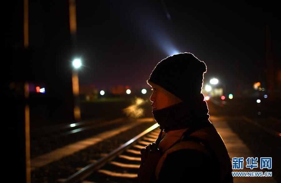 2月5日晚,西宁车站货运转车间调车组连接员史俊杰在等待进行调车作业。