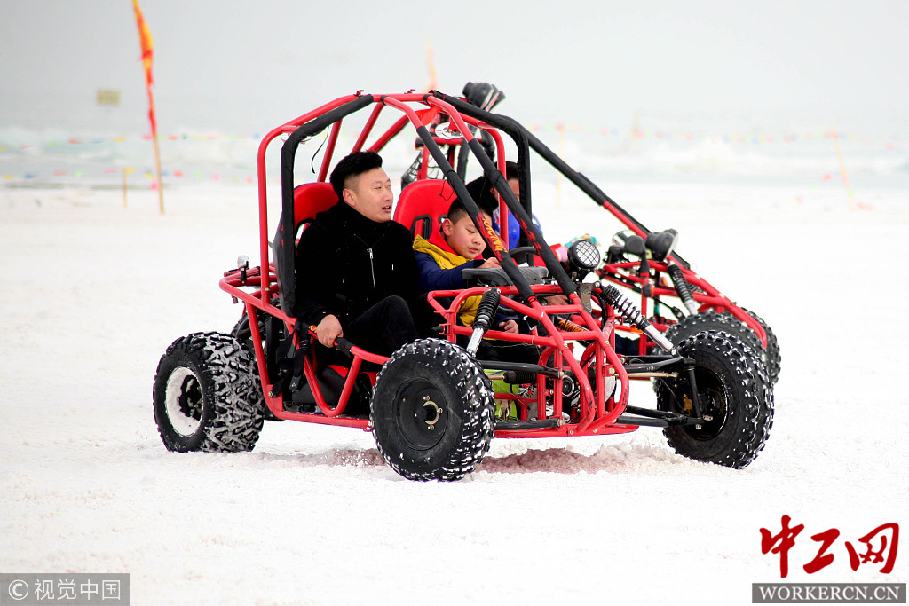 2019年2月8日,新疆博湖县大河口5A级景区众多游客在体验冰雪旅游文化节的乐趣。图片作者:杜炳勋