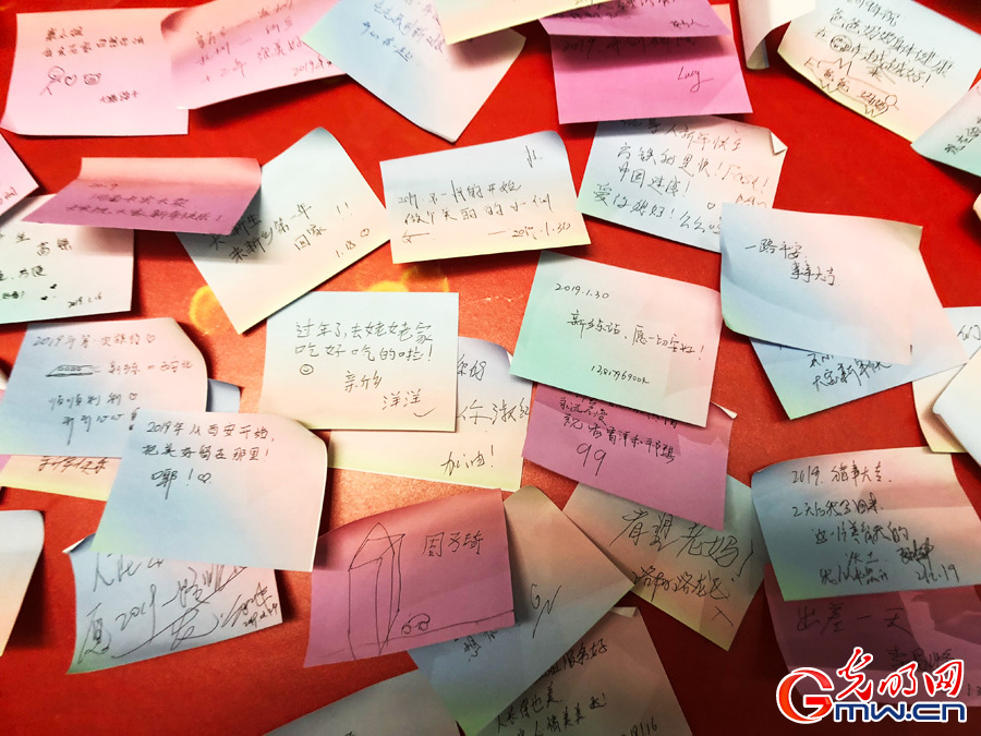 旅客纷纷留言,分享自己的春运回家路。(光明网记者 张倩/摄)