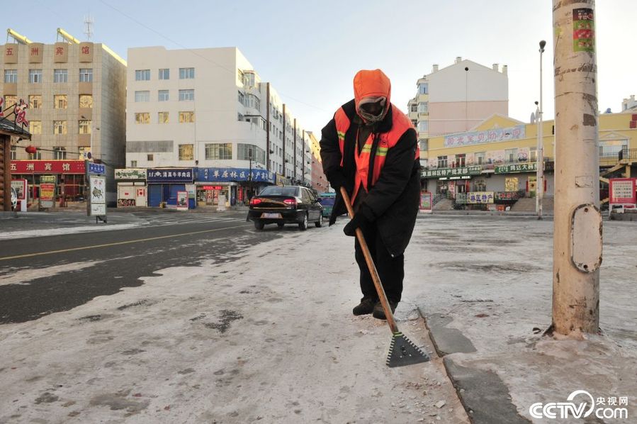 里三层外三层的冬装,不仅使王文章看起来非常臃肿,行动也十分不便,“弯腰捡垃圾、铲积雪都使不上劲儿,衣服实在太厚太沉了。”大约一个多小时后,王师傅清扫好了责任区的一部分路段,打算歇会儿。此时,他的口罩、眼睫毛和眉毛上早已挂满了厚厚的一层白霜。