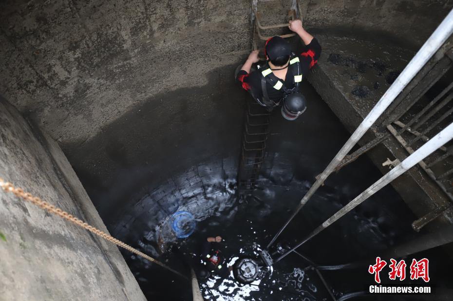 要通过铁制爬梯,下到15米深的排污井。肖尧 摄