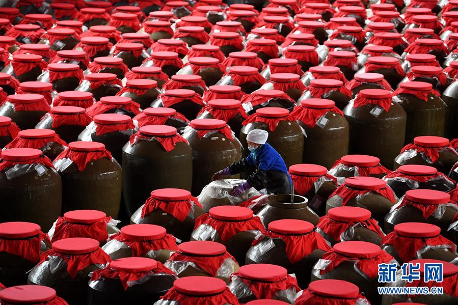 2月13日,在贵州省麻江县一家红酸汤生产企业,工人查看发酵中的红酸汤。 红酸汤是贵州省黔东南苗族侗族自治州群众喜爱的一种传统食品,其制作工艺历史悠久,以鲜辣椒、西红柿和生姜为主原料,经过清洗、入坛、发酵等多道工序制作而成。近年来,当地政府大力推动红酸汤传统工艺保护、传承和创新,红酸汤的生产向规模化、现代化、标准化方向发展,并积极向外拓展市场,产品受到消费者青睐。 新华社发(蔡兴文 摄)