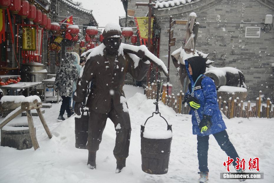 2月14日,小朋友在雪中玩耍。13日夜间起,内蒙古自治区呼和浩特市迎来该地区2019年首场大范围降雪。中新社记者 刘文华 摄