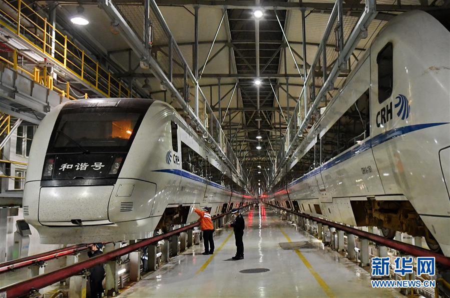 春运以来,福建省近3000名高铁动车维护人员日夜坚守岗位,通宵达旦对181组高铁动车进行全面检查维护,确保每辆高铁动车安全上线,平稳运行。