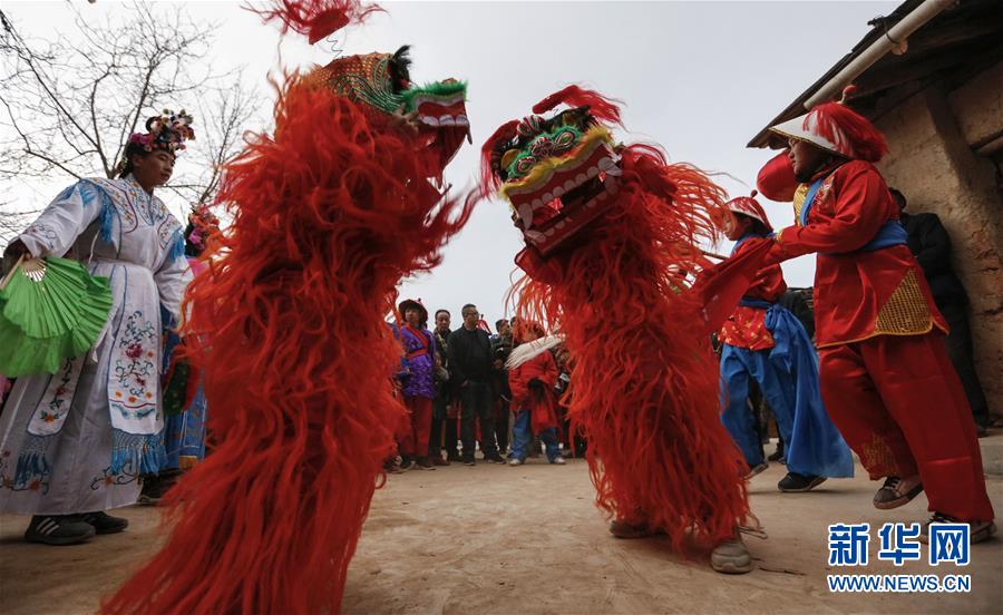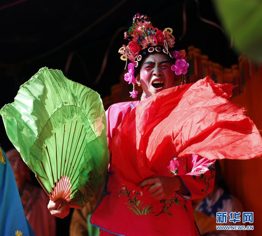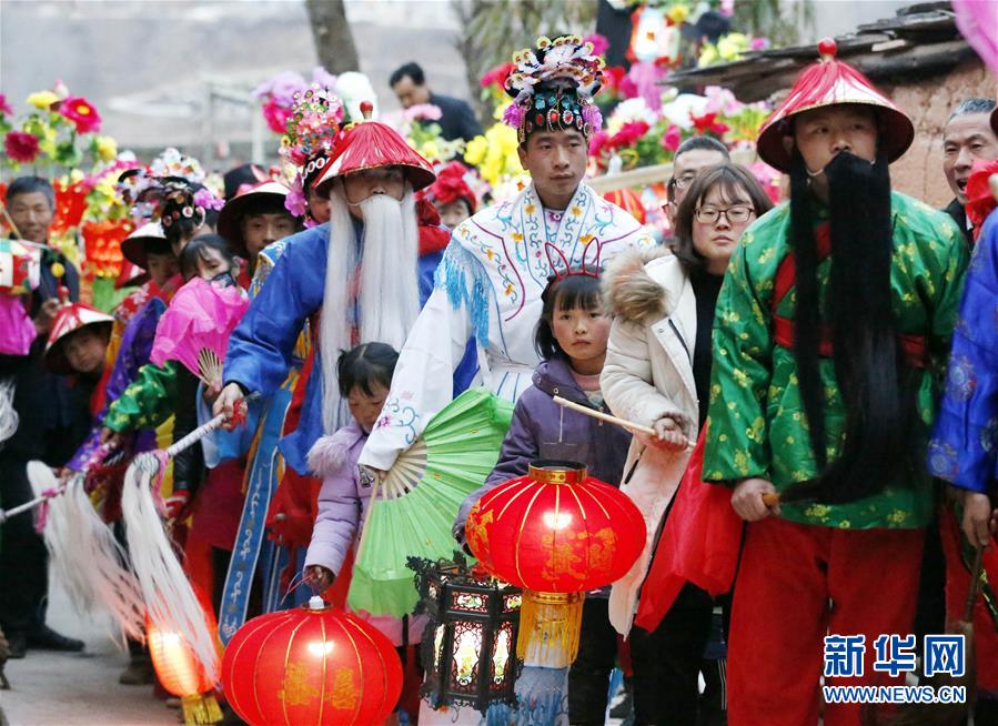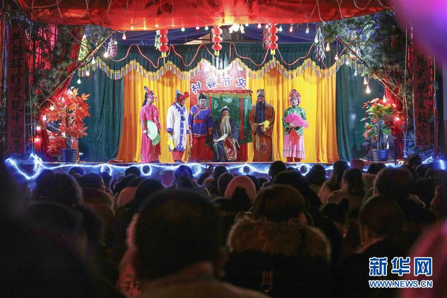 2月15日,甘肃省陇南市武都区鱼龙镇刘家湾村村民在表演当地特色剧种——高山戏。 新华社发(冉创昌 摄)
