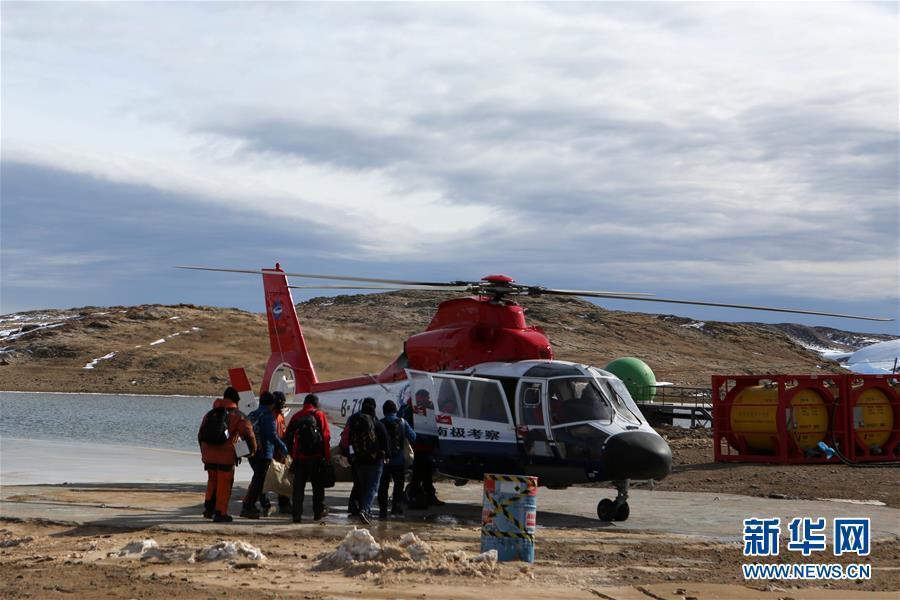 当地时间2月14日下午,“雪龙”号极地考察破冰船载着126名中国第35次南极科考队队员离开南极中山站,返航回国。完成任务的中国极地固定翼飞机“雪鹰601”也于当晚由中山站转场离开南极。图为2月13日,“雪龙”号船载直升机将回国科考队员从中山站接至船上。新华社记者 刘诗平 摄 图片来源:新华网