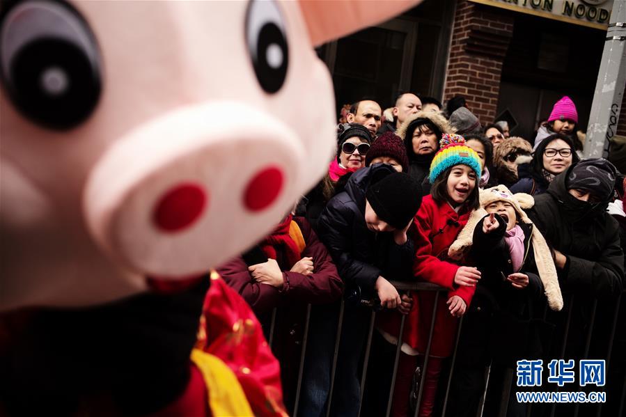 2月17日,在美国纽约,人们观看新春大游行。 当日,纽约曼哈顿唐人街举行新春大游行,庆祝中国农历新年。 新华社记者李木子摄