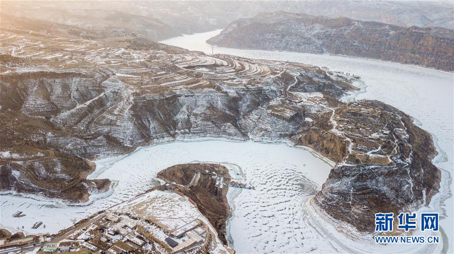 这是2月17日无人机拍摄的老牛湾雪景。 黄河老牛湾位于山西省和内蒙古自治区交界处。新华社记者 彭源 摄