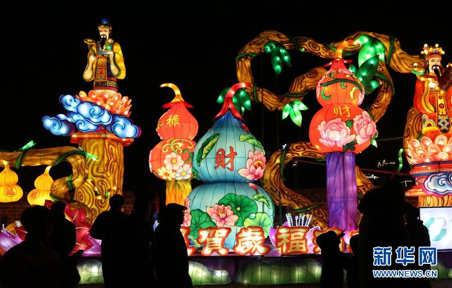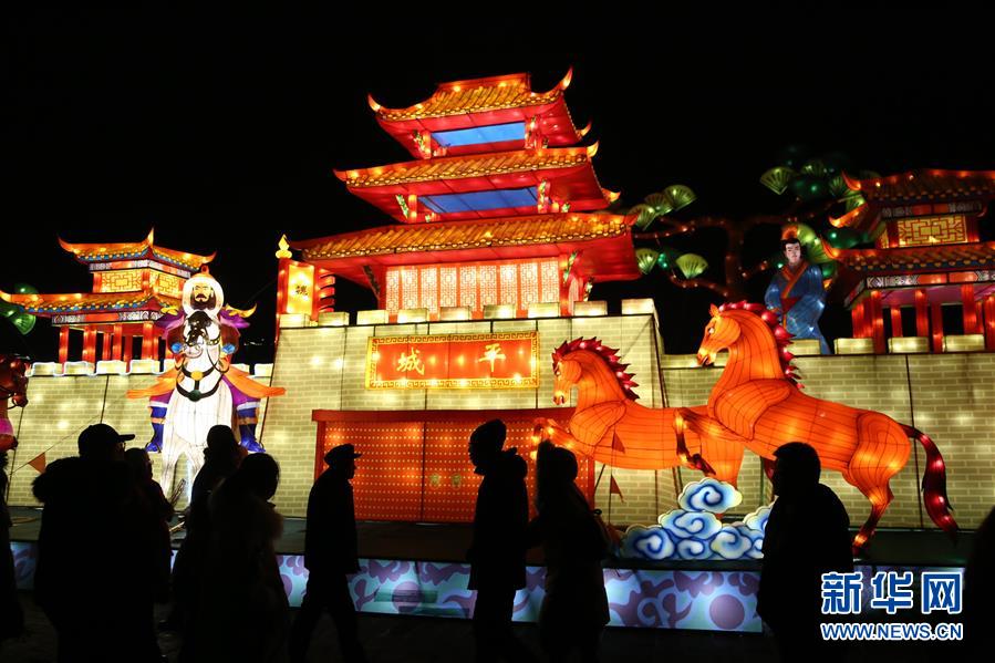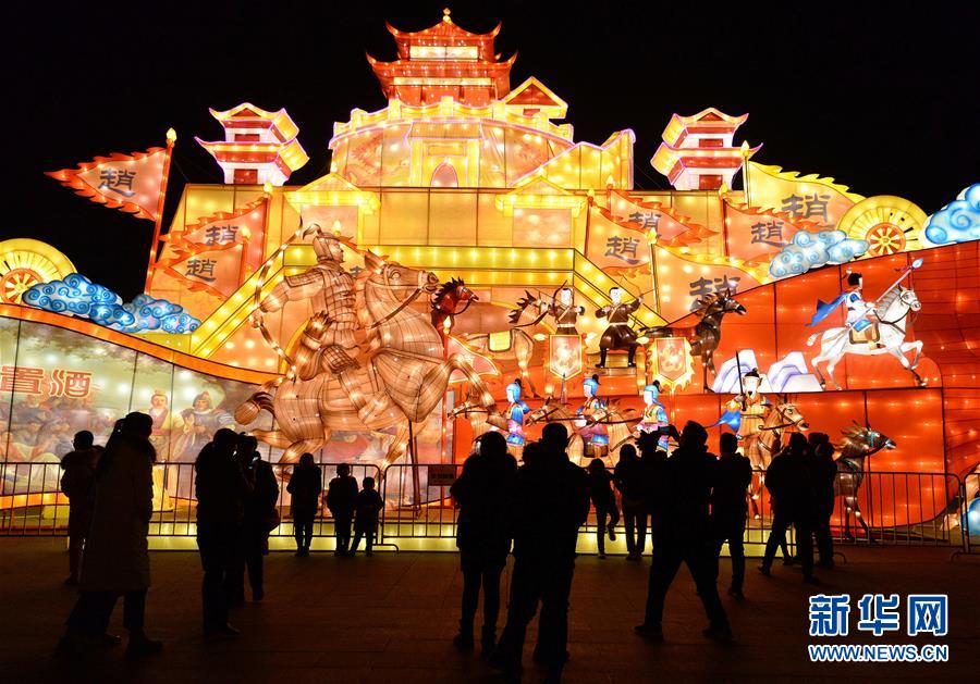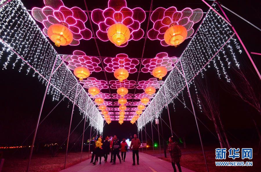 2月17日晚,游客在河北省邯郸市赵王城遗址公园赏灯。 元宵节将至,各地张灯结彩,一派喜庆热闹的节日景象。 新华社发(郝群英 摄)
