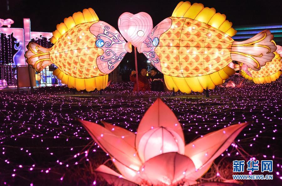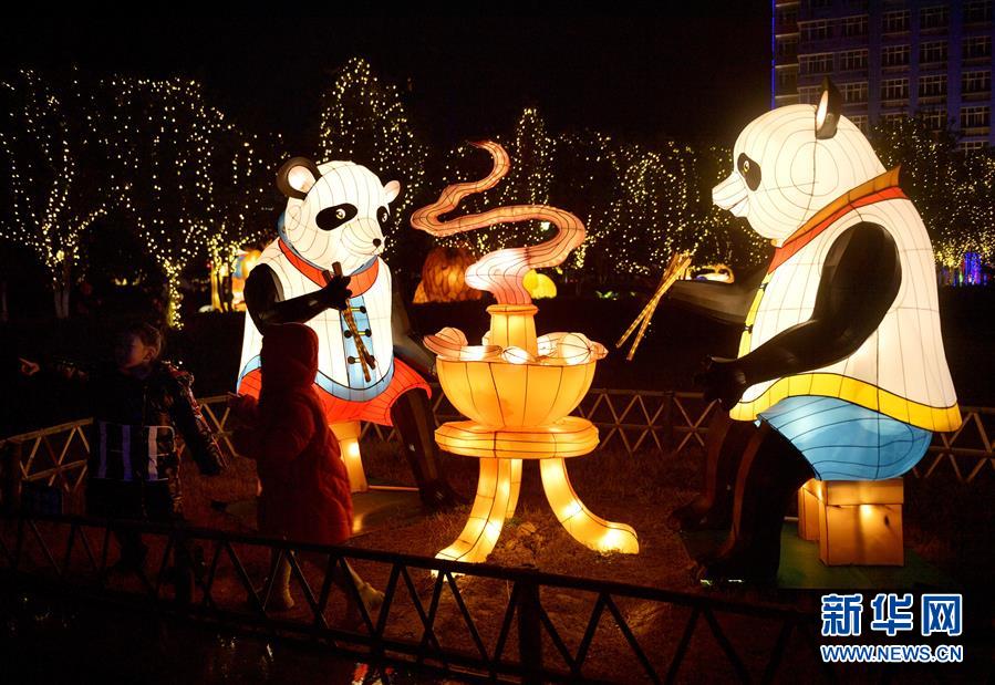 2月17日晚在安徽省亳州市神农谷灯展庙会上拍摄的彩灯。 元宵节将至,各地张灯结彩,一派喜庆热闹的节日景象。 新华社发(张延林 摄)