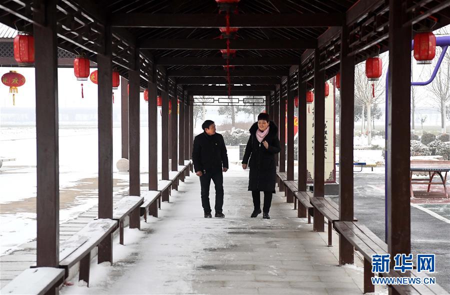 2月14日,葛树芹(右)在村公园的长廊内和一名村干部讨论村里的工作规划。 葛树芹是河南省汤阴县向阳庄村党支部书记,也是一名来自基层的全国人大代表,从1988年担任村干部起,31年来她基本没离开过向阳庄村。“当村官我就干一件事,让老百姓过好自己的‘小日子’,群众幸福了我的工作就干好了。”葛树芹说。 新华社记者 李安 摄
