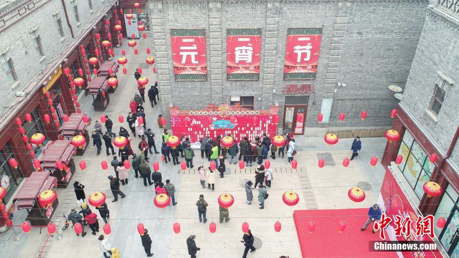 2月19日,哈尔滨老道外南三道街88号院内举办猜灯谜活动,邀市民和游客走进“中华巴洛克”,共度元宵佳节。活动现场的“灯谜墙”吸引众多游客前来猜谜,答对就可以赢取礼品。图为猜灯谜活动现场。中新社记者 吕品 摄