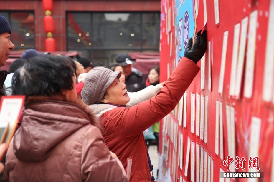 2月19日,哈尔滨老道外南三道街88号院内举办猜灯谜活动,邀市民和游客走进“中华巴洛克”,共度元宵佳节。活动现场的“灯谜墙”吸引众多游客前来猜谜,答对就可以赢取礼品。图为游客猜灯谜现场。中新社记者 吕品 摄