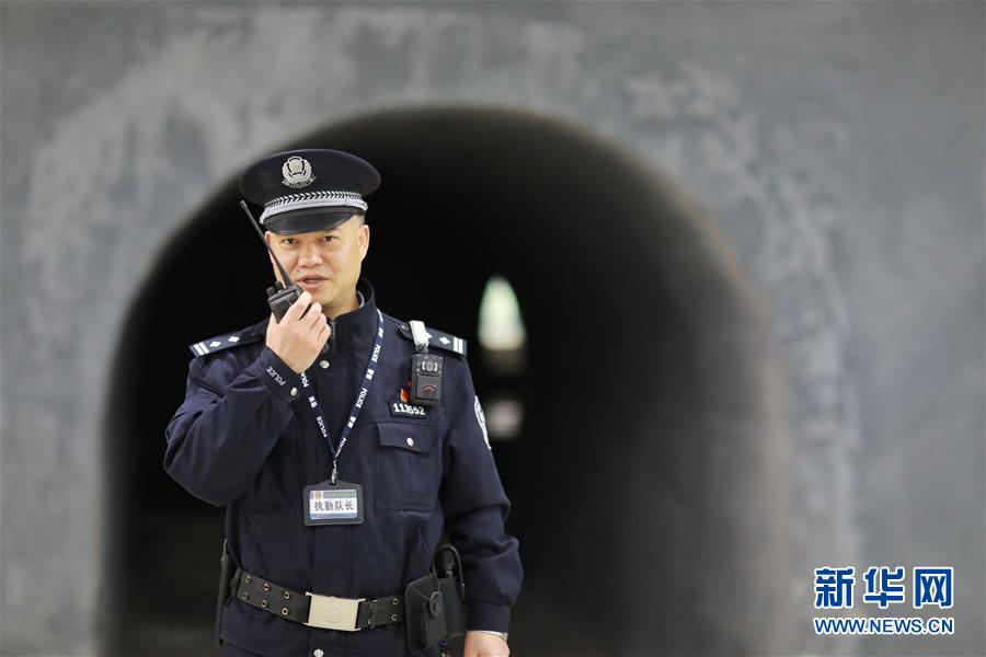 2月19日,警长曾仁仲通过对讲机部署岗位安排。 成都铁路公安局贵阳铁路公安处贵阳东车站派出所龙洞堡警务区,位于贵阳龙洞堡机场航站楼西侧广场地下负二层的龙洞堡高铁站内。春运期间,警长曾仁仲和民警叶波坚守在地下49米的岗位上,确保着春运安全。 新华社记者欧东衢摄