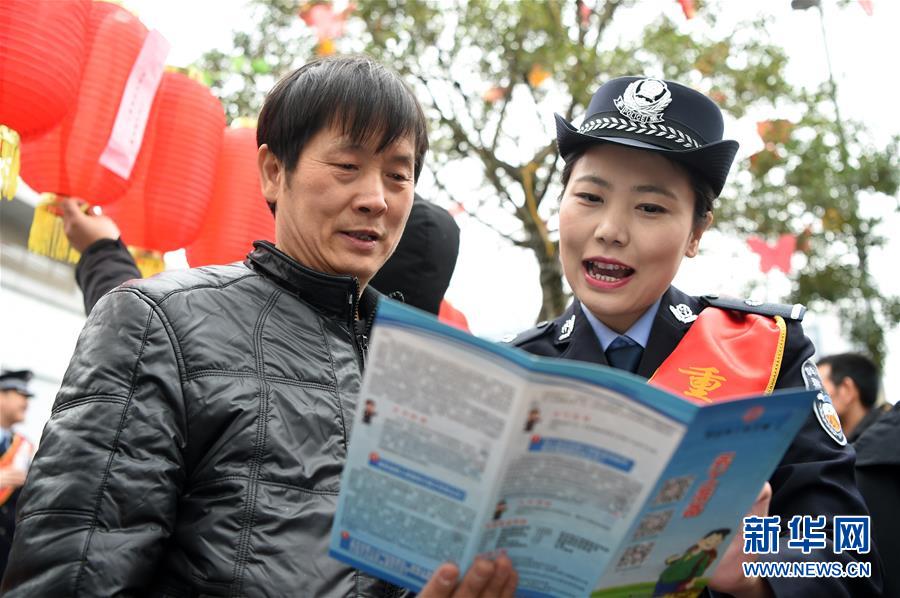 2月19日,铁路公安民警向旅客宣讲乘车安全知识。 新华社记者 唐奕 摄