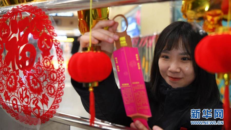 2月19日,乘客在西安大雁塔地铁站参与元宵节灯谜竞猜活动。 新华社记者 陶明 摄