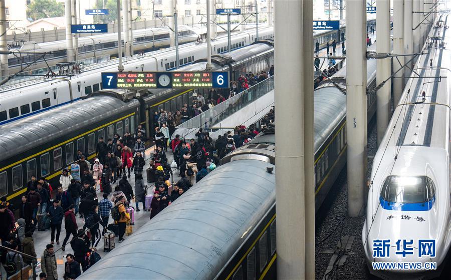 2月20日,旅客在江西南昌火车站准备乘车。 新华社发(鲍赣生 摄)