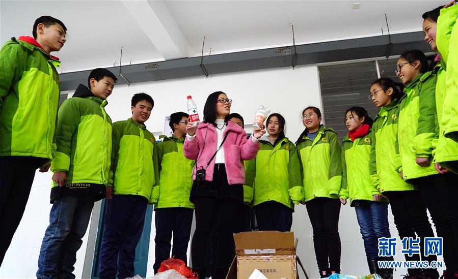 2月20日,在江西省南昌市青山湖区京安学校,学生听老师讲解垃圾分类知识。 新华社记者 彭昭之 摄