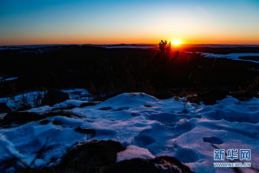 2月20日在内蒙古莫和尔图国家湿地公园拍摄的落日。莫和尔图国家湿地公园地处大兴安岭西麓,位于内蒙古鄂温克族自治旗境内。湿地公园内峰峦连绵,松林密集,水草丰茂。冬日时节,白雪覆盖的湿地公园尽显苍茫,景色壮美。新华社记者 虞东升 摄