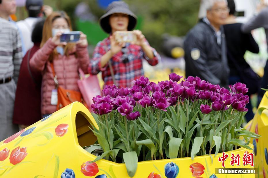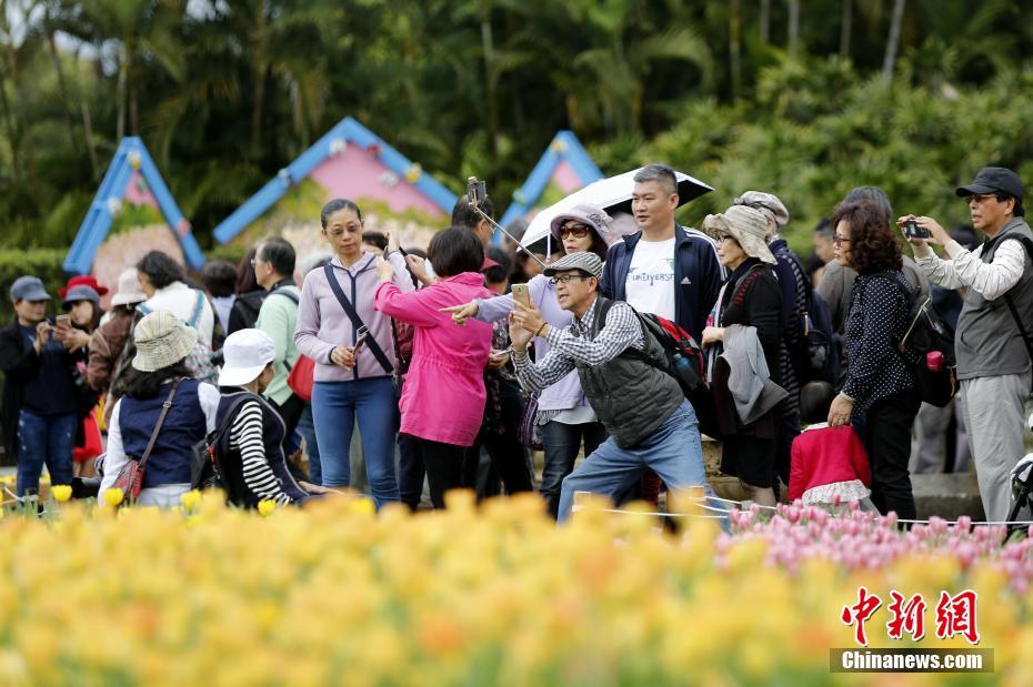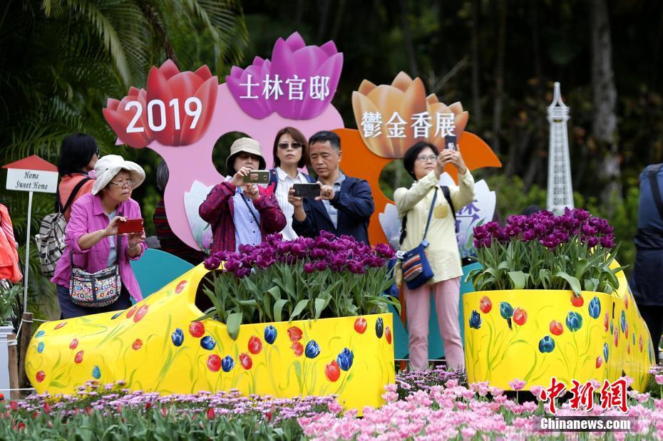 2月21日,2019士林官邸郁金香展在台北开幕,共展出10余个品种、7万株郁金香,吸引游客拍照。中新社记者 陈小愿 摄