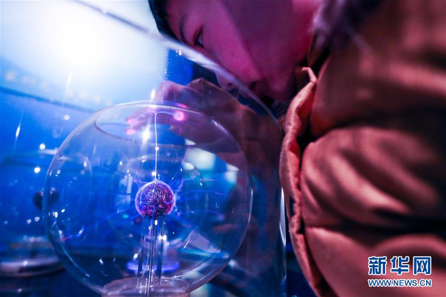 2月21日,一名小朋友在贵阳供电局节能展示中心体验辉光球。 新华社记者刘续摄