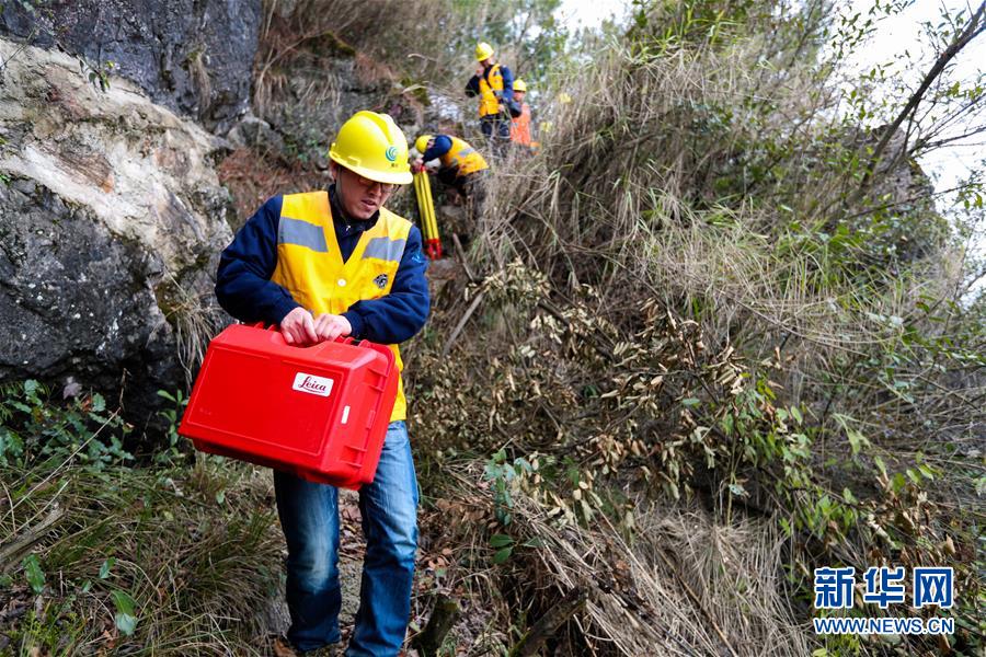 2月21日,贵阳高铁工务段工作人员行走在山上,前往作业地点。新华社记者 刘续 摄