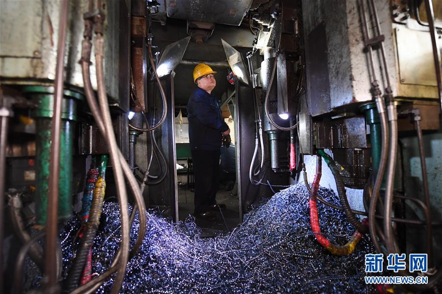 2月21日,机车镟轮工张杰在西安机务段检修车间操作机床进行镟修作业。新华社记者李一博摄